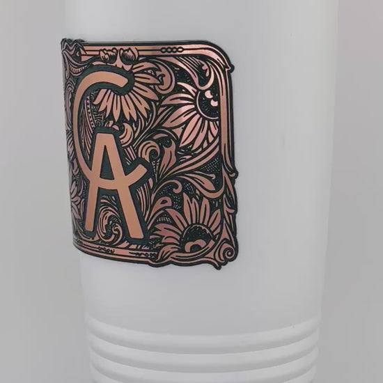 Hand washing is recommended to preserve the engraved finish and insulation performance. Avoid abrasive cleaners and prolonged exposure to extreme heat.